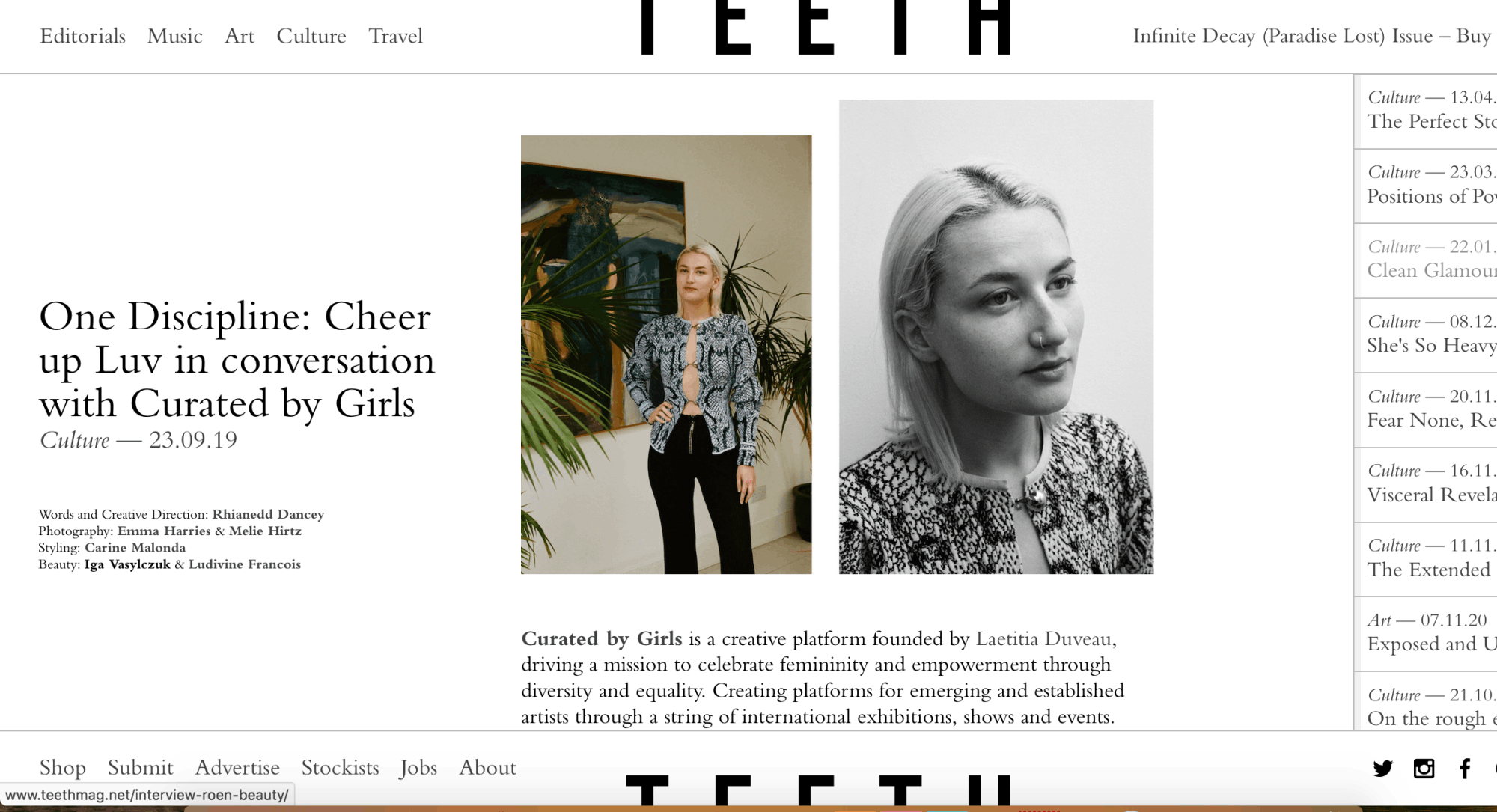 Glamour, BBC Radio 4, The Guardian, Sky News, Marie Claire, Dazed, Crack Magazine, Huck, Atmos, Creative Review, The Evening Standard, The Pixel Project, Creative Boom, Global Citizen, London Live, Bricks Magazine, The Independent, Glamour, The Mirror, Dazed, It's Nice That, Stylist, Dazed, United Nations, UN Women UK, Hunger Magazine, Dazed Digital, Grazia, UNFPA, Lecture In Progress, BBC News, Bricks, GURLS TALK, The Royal Photographic Society, Teeth Mag, Wonderland, Bustle, i-D, Dazed, Wallpaper*, Refinery29, BBC London, Channel 5 News, Its Nice That, ELLE, Dazed, Adobe, BuzzFeed, British Journal of Photography, DIVA, Huffpost, L'Officiel, The Evening Standard, The Guardian, Mail Online, The ICP, The Independent, i News, Daily Express, METRO, The Lily, Jezebel, Lomography, Creative Boom, Sukeban, Oh Comely, Sleek, M2 Woman, Edition F, Trendencias, Dont Panic, Ladies Who Launch
